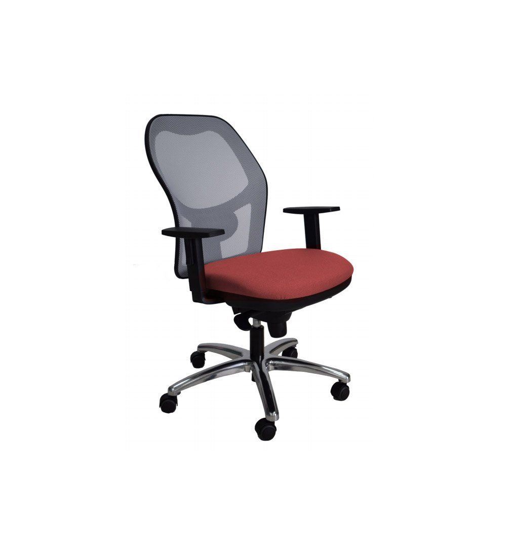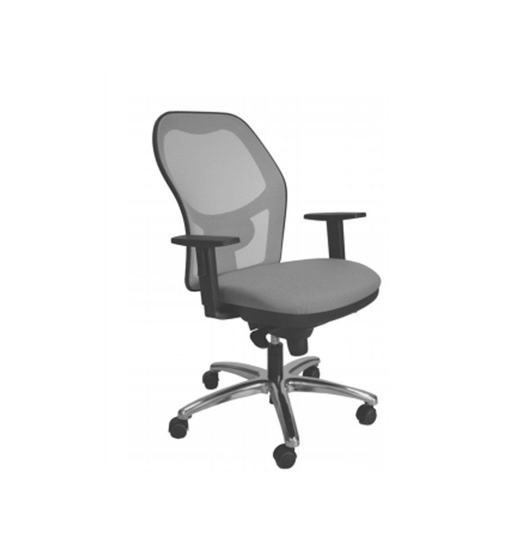 El respaldo está fabricado con malla transpirable y tensado sobre bastidor de polipropileno color negro y asiento ergonómico con curvatura delantera tapizado sobre goma de poliuretano de alta densidad, y mecanismo syncron con contacto permanente y bloqueo en 5 posiciones.