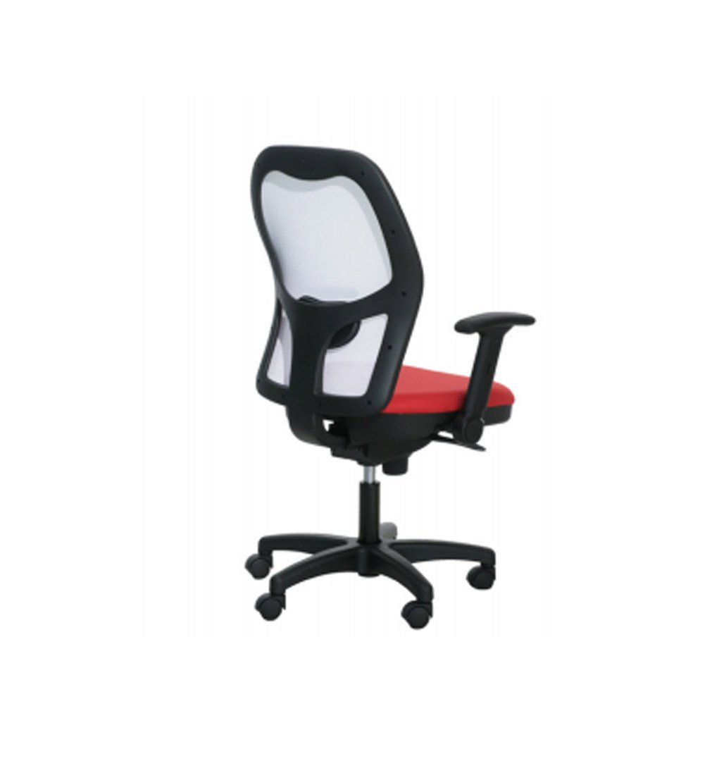 El apoyo lumbar es regulable en altura en material blando de color negro y cuenta con dos modelos de brazos, fijos o regulables, a elegir. La malla de esta silla está disponible en varios colores (negro, blanco, gris, azul y rojo) y la tapicería, según catálogo.